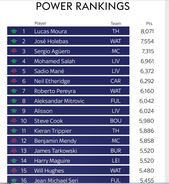 حصد محمد صلاح 6961 نقطة وجاء فى المركز الرابع، بينما تصدر نجم توتنهام لوكاس مورا المسابقة برصيد 8071 نقطة، ويليه جوزيه هوليباس مدافع واتفورد فى المركز الثانى برصيد 7554 نقطة، ثم سيرجيو أجويرو فى المركز الثالث برصيد 7315 نقطة.