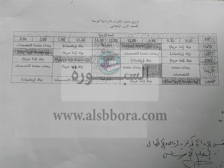 توزيع فترات الصف الأول الابتدائي نظام