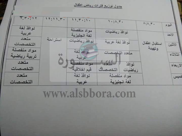 تنشر"السبورة" جدول توزيع حصص الدراسية لمرحلة رياض الأطفال والصف الاول الابتدائي فى النظام الجديد للتعليم.