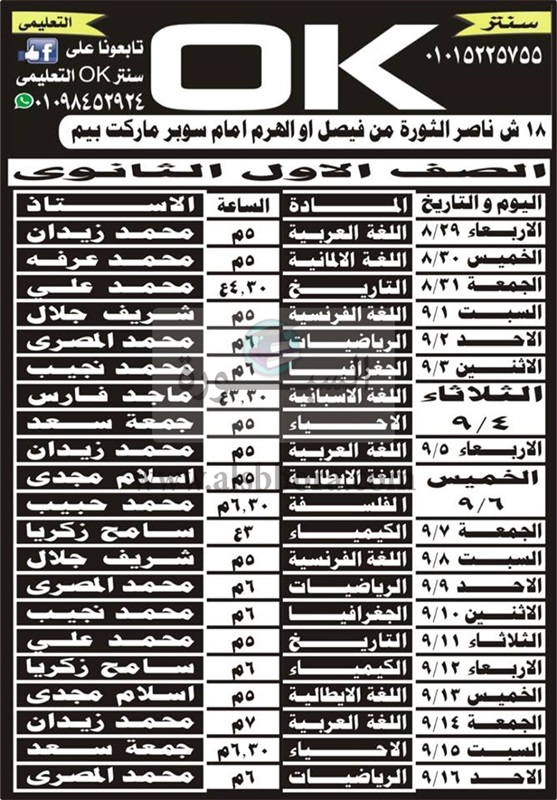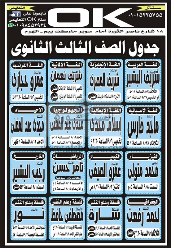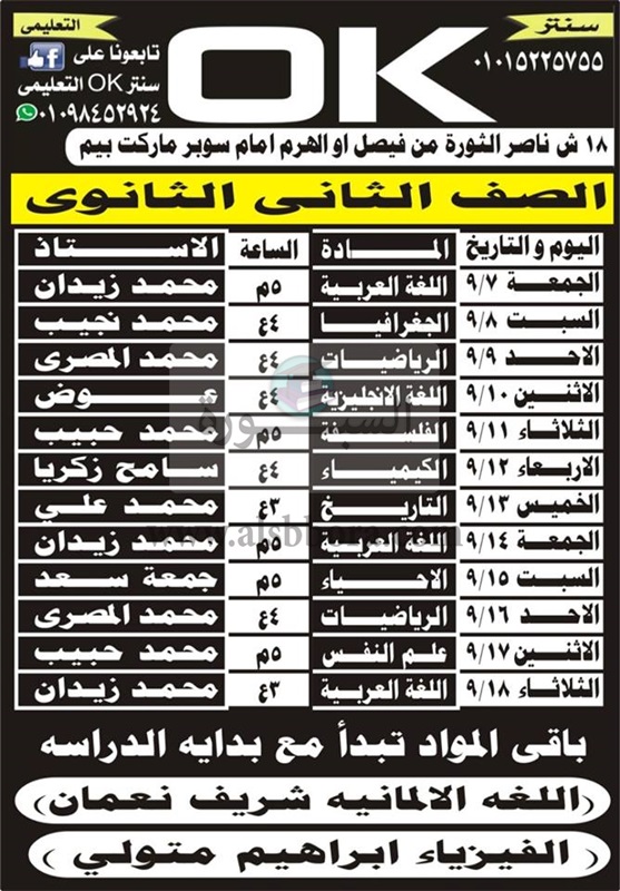 ننشر اسماء المعلمين العاملين بمراكز الدروس الخصوصية .. سنتر "ok" فوق القانون ..الاوكار تتحدى الوزارة والمحافظة