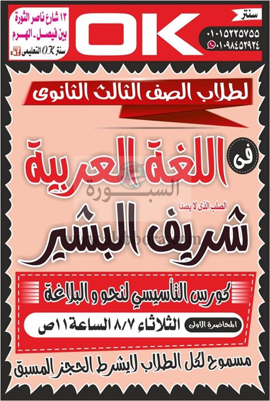 فيها "لجميع الطلاب الحجز للعام القادم فى جميع المواد شغال بجميع الفروع جميع