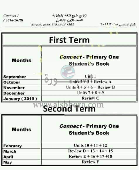 توزيع منهج اللغة الانجليزية للصف الأول الابتدائى للعام الدارسى الجديد 2019/2018.. 4 حصص اسبوعيا