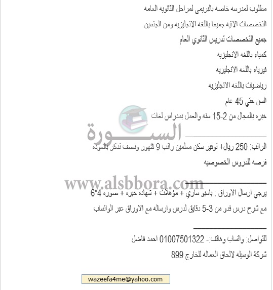 تعلن مدرسة خاصة في سلطنة عمان عن وظائف جديدة للمعلمين والمعلمات وذلك وفقا لنص الإعلان التالي:-