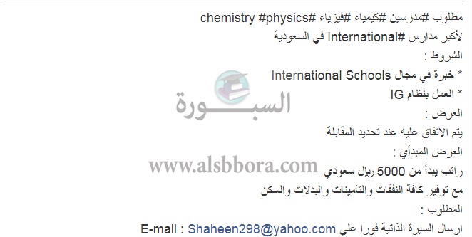 تعلن كبري المدارس السعودية عن وظائف جديدة للمعلمين والمعلمات بمرتبات تصل إلي 5000 ريال وذلك وفقا لنص الإعلان التالي:-