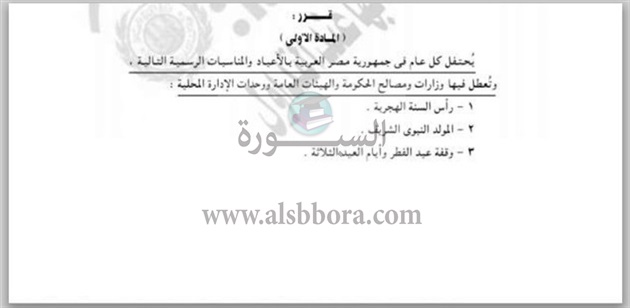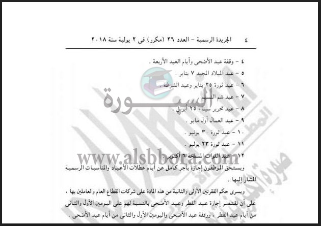 تنشر "السبورة" القرار الوزاري الخاص بالاجازات التي سيحصل عليها العاملين بالدولة والتي تبدأ الثلاثاء المقبل