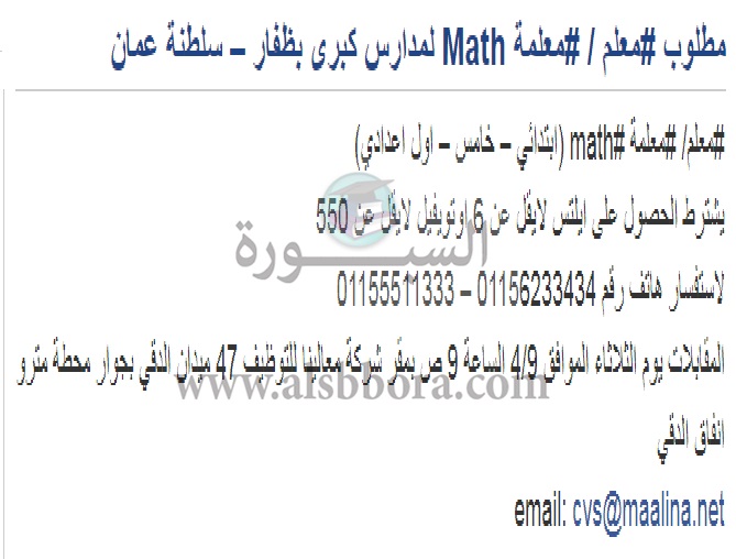 تعلن مدارس ظفار العمانية عن وظائف جديدة للمعلمين والمعلمات وذلك وفقا لنص الإعلان التالي:-