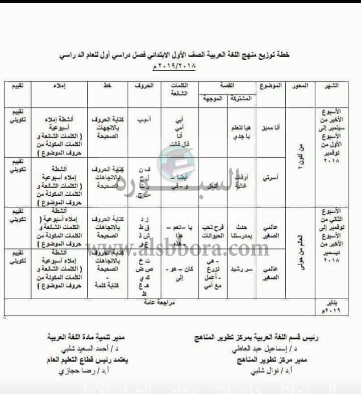 أعلن الدكتور احمد السعيد شلبى، مدير تنمية مادة اللغة العربية عن النظام الجديد لخطة توزيع اللغة العربية للصف الأول الابتدائى 2019/2018، والذى سوف يبدأ تطبيقه خلال العام الجديد فى 22 سبتمبر، حيث جاءت الخطة كالتالى: