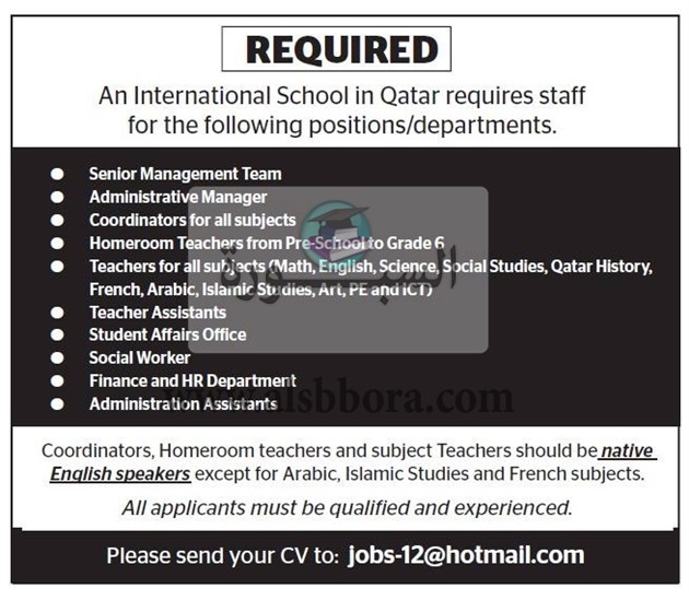 تعلن مدرسة خاصة في قطر عن وظائف جديدة للمعلمين والمعلمات وذلك وفقا لنص الإعلان التالي:-