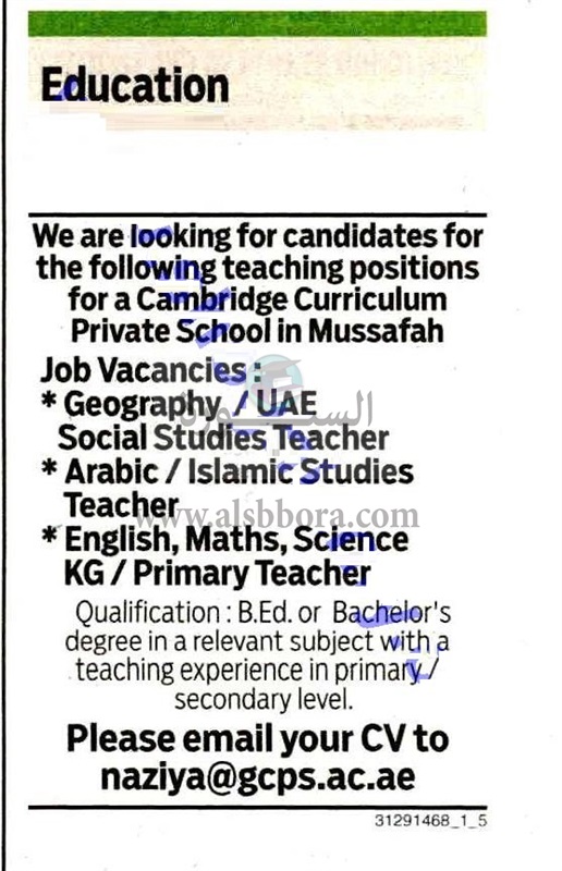 تعلن مدرسة خاصة في دولة الإمارات عن وظائف جديدة للمعلمين والمعلمات وذلك وفقا لنص الإعلان التالي: