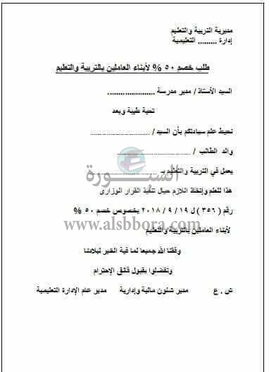 ننشر استمارة الحصول على خصم 50% لأبناء المعلمين والعاملين بوزارة التربية والتعليم
