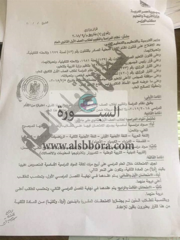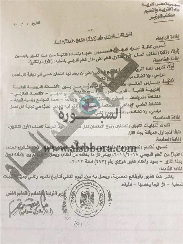 بالمستندات| ننشر القرار الوزارى 344 الخاص بنظام التعليم الجديد.. "المواد التى تضاف الى المجموع.. والمواد التى لا تضاف الى المجموع"
