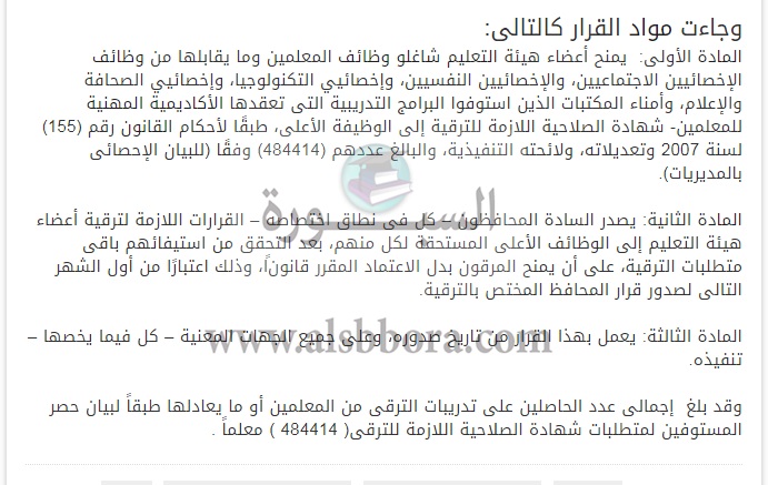 تنشر "السبورة" نص القرار الوزارى رقم 358 الذى أسعد المعلمين على مستوى الجمهورية وإليكم نص القرار:-