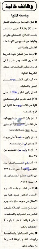 وظيفتك عندنا غدا أخر موعد للتقديم| جامعة حكومية تعلن عن وظائف جديدة لأعضاء هيئة التدريس "من معيد إلي أستاذ".. ننشر نص الإعلان الثلاثاء 25/سبتمبر/2018 - 08:08 م facebook twitter whats x facebook twitter rss feed تعلن جامعة المنيا عن وظائف جديدة لأعضاء هيئة التدريس "من معيد إلي أستاذ" علما بأن أخر موعد للتقديم الأربعاء المقبل وذلك وفقا لنص الإعلان التالي: facebook twitter whats