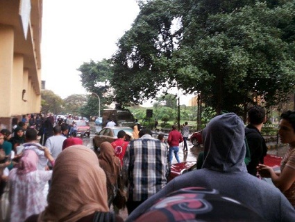 شهدت جامعة عين شمس اليوم الاحد "حرب شوارع" ، حيث شهدت مشاجرات بالطوب والزجاج بين الطلاب المؤيدين للجيش و طلاب الاخوان وحاول الامن الادارى التدخل لفض هذا الاشتباكات والتي استمرت مده طويله ، وكانت مظاهره لطلاب الاخوان ضدالجيش هي السبب الرئيسي للاحداث حيث قام الطلاب من مؤيدي الجيش بالمواجهة ،ولم يستطع سيطره الامن الادارى فض الاشتباكات فتم استدعاء الداخليه ، الغريب فى الامر ان مدرعه الداخليه جأت بعد فض المشاجره تماما وهدوء الجو ولم تستمر المدرعه فى الجامعه اكتر من ربع ساعه