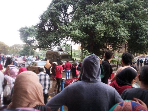 بالصور ..حرب شوارع في جامعة عين شمس ومدرعة الداخلية داخل الاسوار بعد فض الاشتباكات