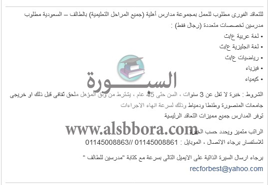 تعلن مدرسة خاصة في السعودية عن وظائف جديدة للمعلمين والمعلمات بمرتبات تصل إلي 10 ألائف ريال وذلك وفقا لنص الإعلان التالي: