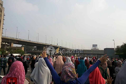 مسيرة طالبات ضد الانقلاب بجامعة الازهر في طريقها الي محمد محمود