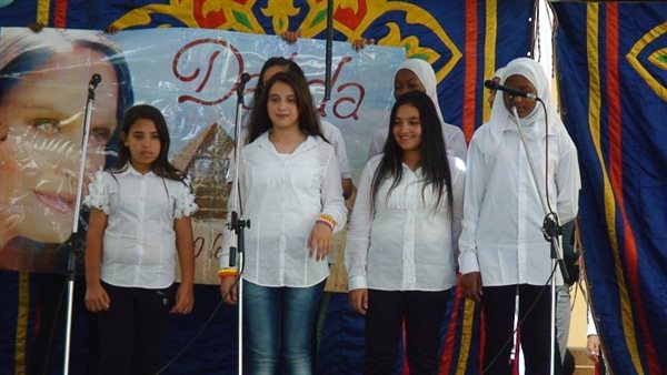 طريقة العرض المتناسقة بحركات الطالبة فأكتمل المشهد وظهر شعار المدرسة إلى جانب الفقرات العسكرية التى قام بها طلاب المرحلة الإبتدائية .