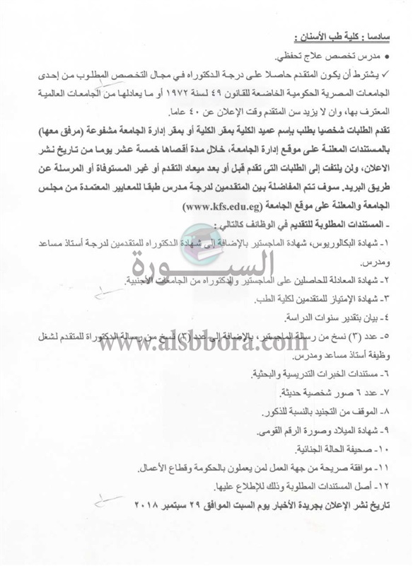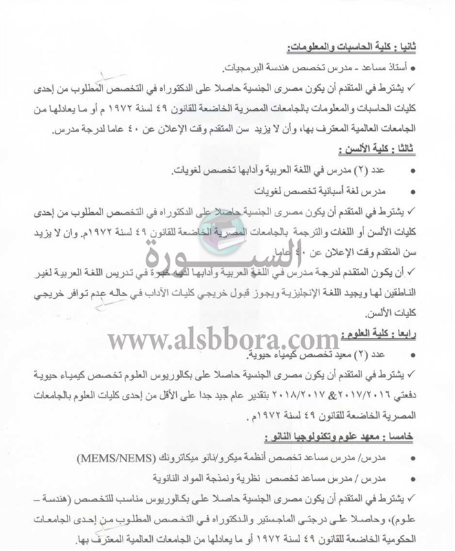 تعلن جامعة حكومية عن وظائف جديدة لأعضاء هيئة التدريس "من معيد إلي أستاذ" في 6 كليات علما بأن أخر موعد للتقديم 16 أكتوبر وذلك وفقا لنص الإعلان التالي:-