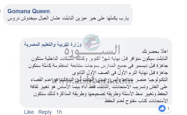 ، أعلنت وزارة التربية والتعليم في وقت سابق ، أن جهاز تابلت الثانوية العامة الجديد