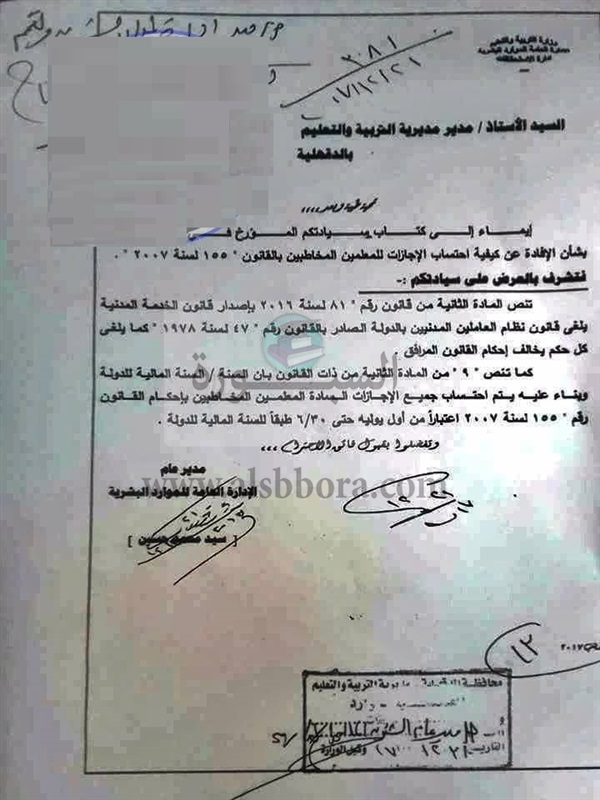 بالمستندات| التعليم: احتساب اجازات المعلمين على السنة المالية من أول يوليو الى 30 يونيو