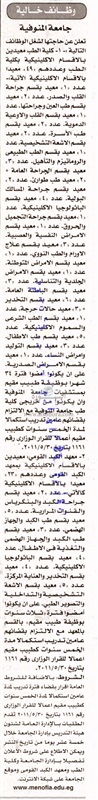 تعلن جامعة المنوفية عن وظائف جديدة لأعضاء هيئة التدريس "من حملة الماجستير والدكتوراه" وذلك وفقا لنص الإعلان التالي: