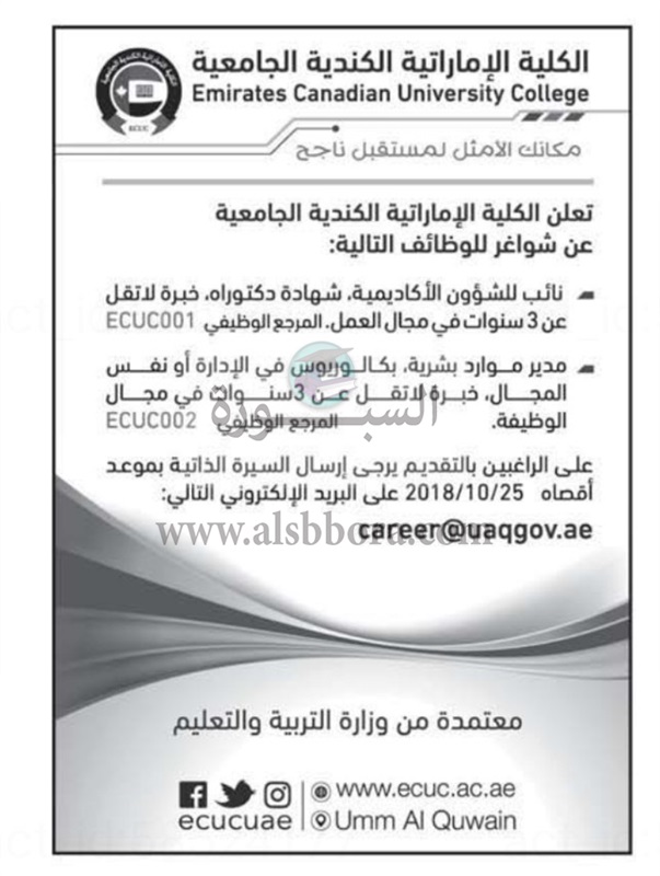 تعلن جامعة خاصة في دولة الإمارت العربية المتحدة عن وظائف جديدة لأعضاء هيئة التدريس"من حملة الماجستير والدكتوراه" وذلك وفقا لنص الإعلان التالي: