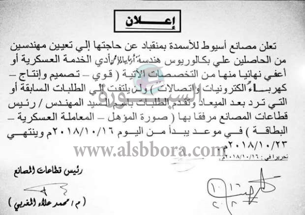 تعلن "مصانع أسيوط للأسمدة" عن وظائف جديدة للمهندسين وذلك وفقا لنص الإعلان التالي:
