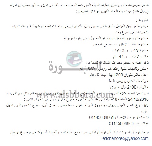 تعلن مدرسة خاصة في السعودية عن وظائف جديدة للمعلمين والمعلمات وذلك وفقا لنص الإعلان التالي: