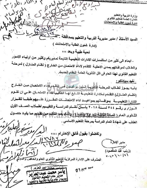 تنشر " السبورة " نص الخطاب الرسمى المرسل للمديريات التعليمية بشأن طلاب المنازل ومدى احقيتهم بدخول الامتحانات من الخارج لمرحلة التعليم الثانوى
