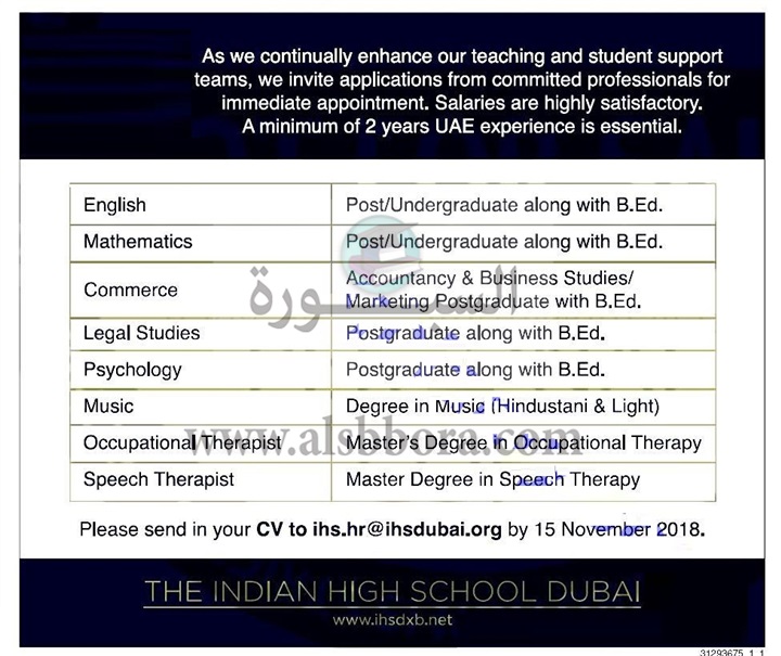 تعلن مدارس دبي الإماراتية عن وظائف جديدة للمعلمين والمعلمات في 8 مواد وذلك وفقا لنص الإعلان التالي: