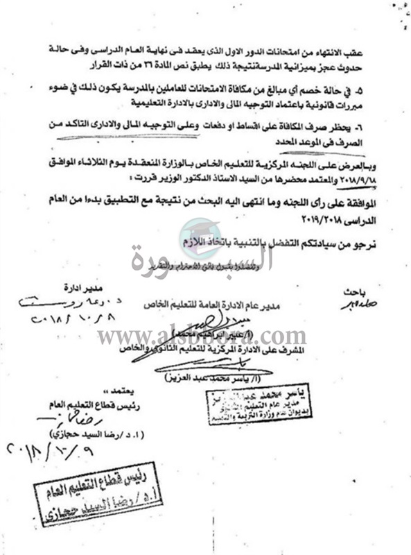 بالمستندات| وزارة التربية والتعليم تقرر زيادة مكافآت الامتحانات للمعلمين