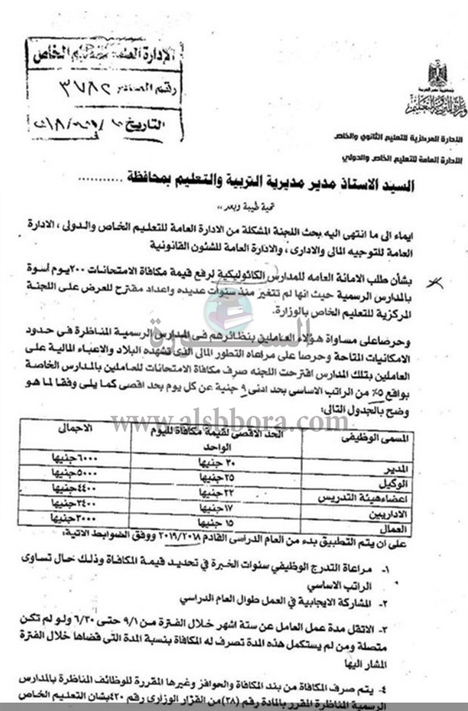 بالمستندات| التعليم تعلن شروط صرف مكافآت الامتحانات وفقا للشرائح الجديدة