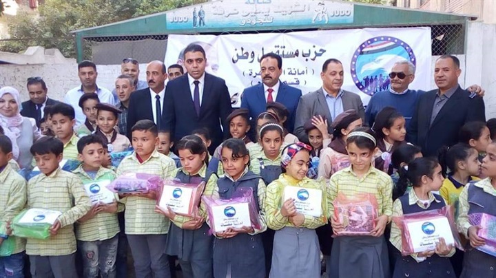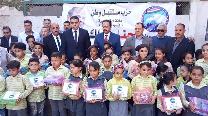 بالصور.. حزب مستقبل وطن يقوم بتوزيع حقائب مدرسية علي طلاب مدارس القاهرة
