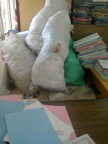رصدت كاميرا " السبورة " صورة الملفات والتى تعتبر من أهم المستندات لديها لأنها مستندات تعيين لكل العقود الحديثة الخاصة بالمعلمين الجدد وهي علي الارض تعبث بها الفئران واصبحت طعام يومي لها ، فهل يعقل أن يكون مصيرها بهذه الصورة