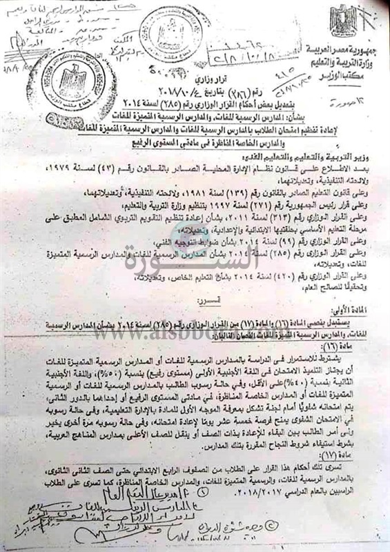بالمستندات.. "التعليم" تصدر قرارا وزاريا هاما لطلاب المدارس الرسمية للغات