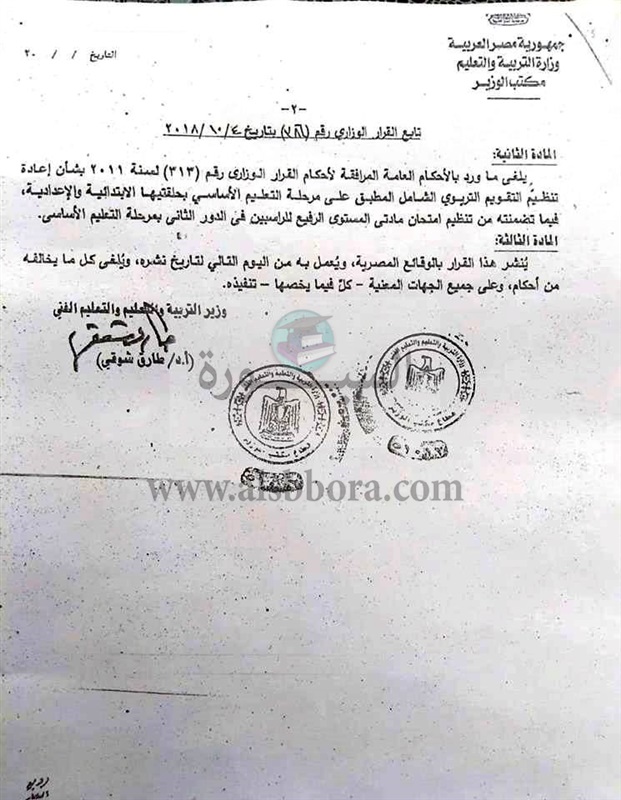 وأضاف القرار، أن في حالة رسوب الطالب مرة أخرى