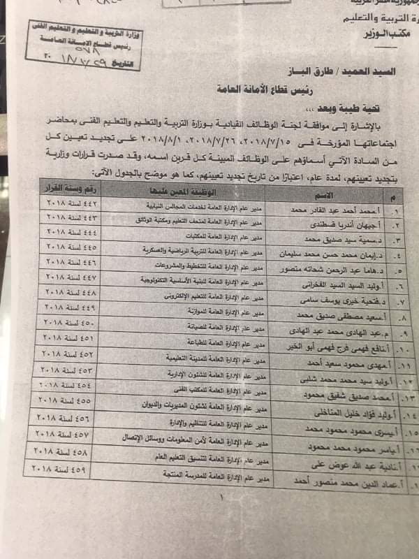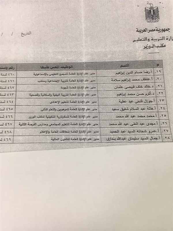 اصدر الدكتور طارق شوقى، وزير التربية والتعليم والتعليم الفنى، قرارا وزاريا بتجديد تعيين 28 قيادة فى ديوان الوزارة والتى جاءت كالتالى: