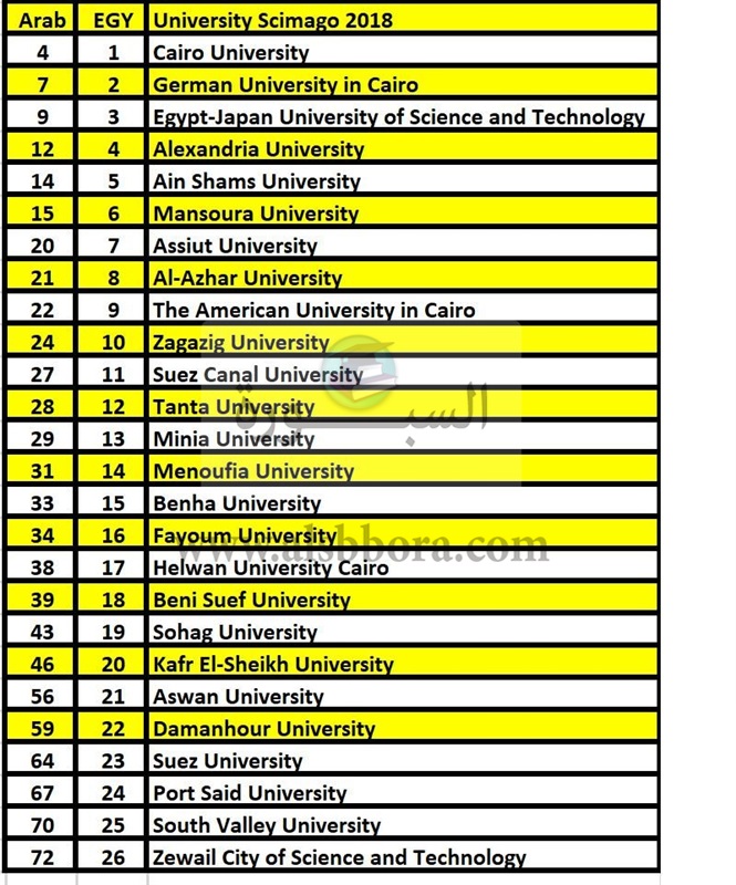 وعربيا صنفت عشرين جامعة مصرية من أفضل خمسين جامعة عربية في البحث العلمي ، على الرغم من المنافسة مع الجامعات الأجنبية في قطر والإمارات... ولهذا بوست خاص