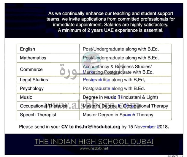 أعلنت مدرسة خاصة في دولة الإمارات عن وظائف جديدة للمعلمين والمعلمات وذلك وفقا لنص الإعلان التالي: