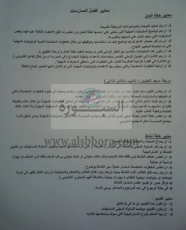 ينشر موقع السبورة معايير خطة العمل والنشاط للمعلمين أولا، وتشمل مرحلة ما بعد التطبيق، ومعايير خطة النشاط، ومعايير الفيديو، وكل مرحلة تنقسم الى عدد من البنود، نوجزها فى المنشور التالى: