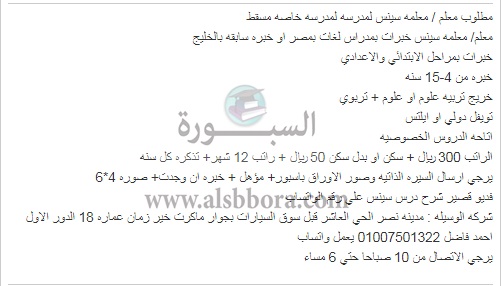 مدارس مسقط العمانية تعلن عن وظائف جديدة للمعلمين والمعلمات.. ننشر نص الإعلان
