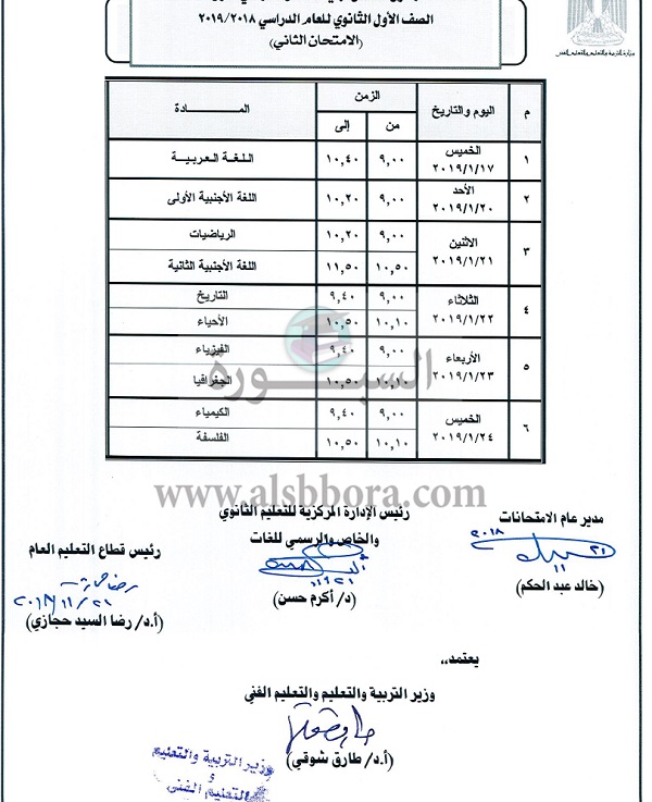 اعتمد جدول امتحان الصف الأول الثانوي بتاريخ