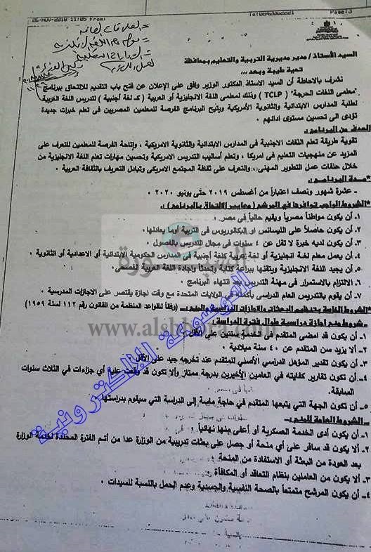 أعلنت وزارة التربية والتعليم والتعليم الفنى عن منحة مجانية للمعلمين الى الولايات المتحدة الأمريكية للتعرف على مناهج التعليم فى المدارس هناك على ان تكون المنحة 10 شهور ويتم صرف اعانة اعاشة طوال مدة المنحة مبلغ 20 ألف دولار، ولمزيد من التفاصيل خلال الخطاب الصادر من الوزارة الى جميع المديريات التعليمية.