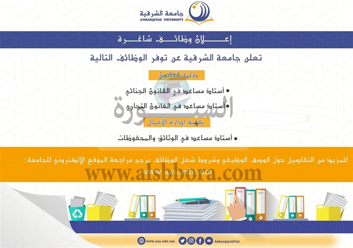 تعلن جامعة الشرقية عن وظائف جديدة لأعضاء هيئة التدريس "من معيد إلي أستاذ" وذلك وفقا لنص الإعلان التالي:-