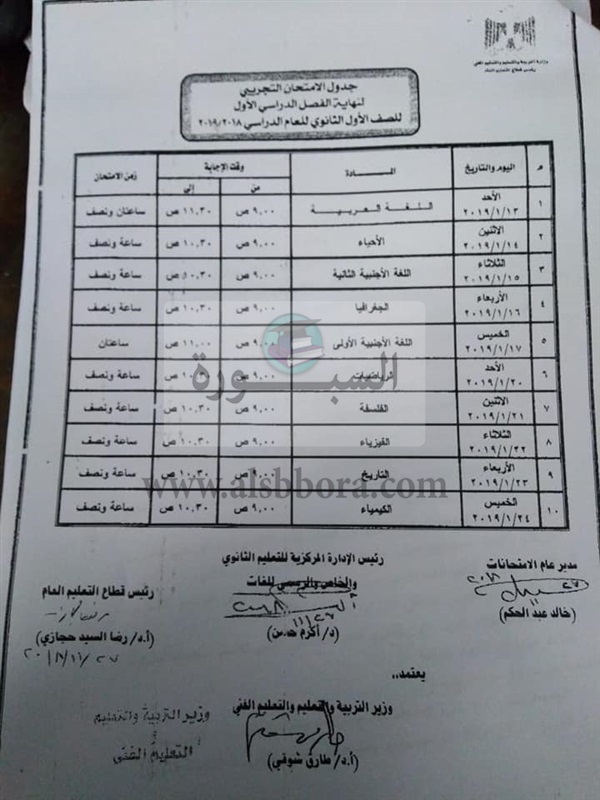 تنشر "السبورة" أحدث نشرة واردة من وزارة التربية والتعليم بشأن امتحانات الصف الأول الثانوي