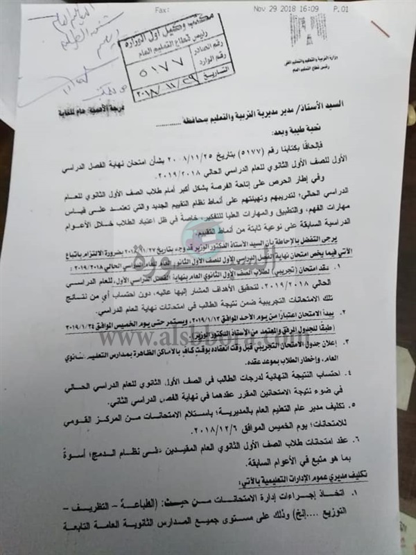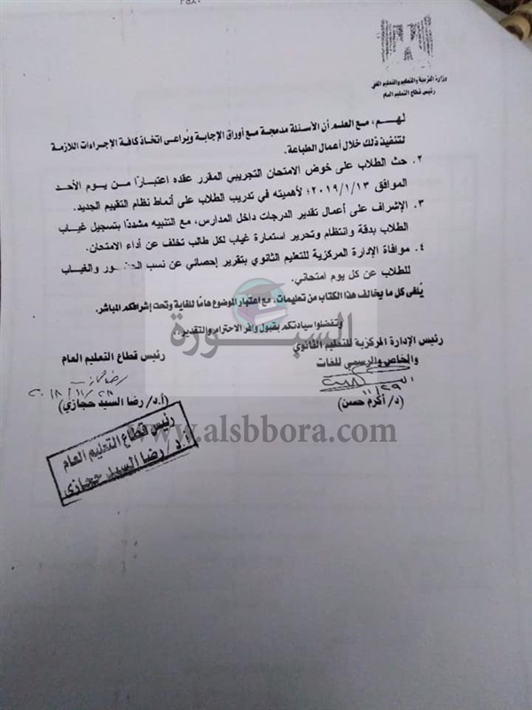 بالمستندات.. أحدث نشرة واردة من وزارة التربية والتعليم بشأن امتحانات الصف الأول الثانوي