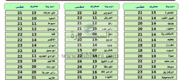 وجاءت درجات الحرارة المتوقعة كالتالي:
