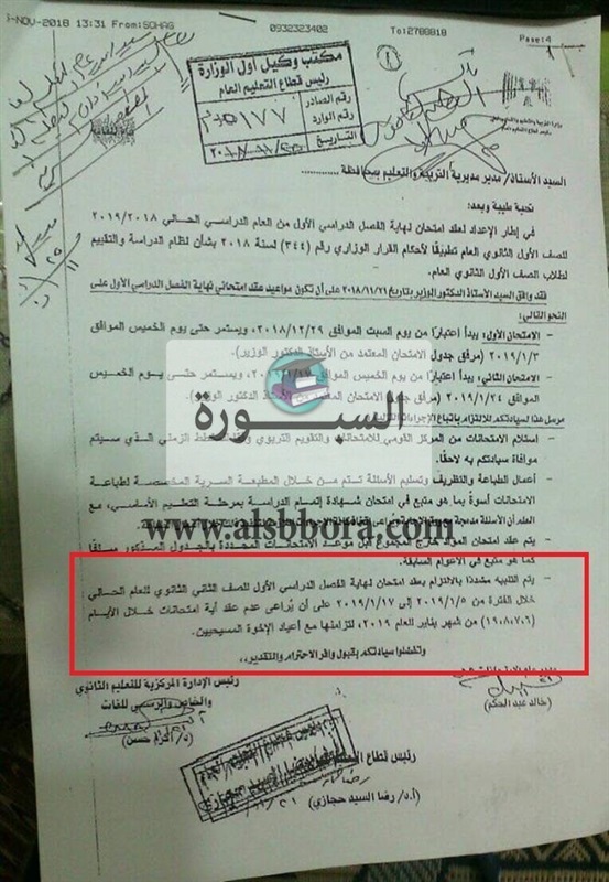 بالمستندات.. التعليم تصدر قرارا وزاريا يتم تطبيقه أيام "6 و7 و8 و19" يناير يطبق علي جميع المديريات والإدارات التعليمة