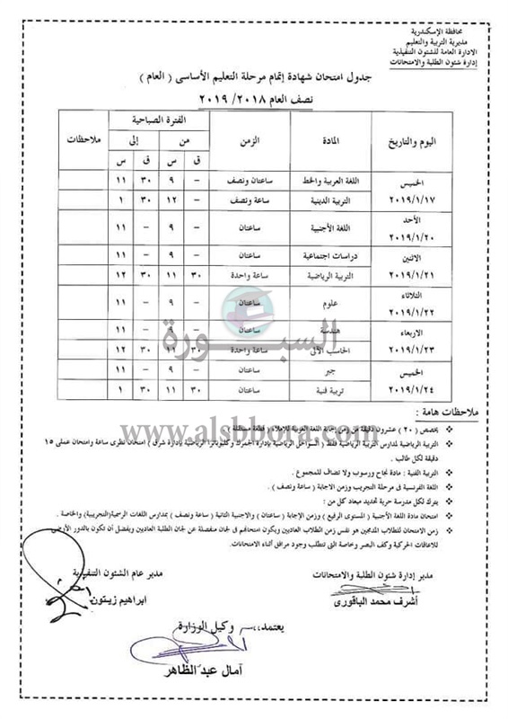 تعليم الاسكندرية يعلن جدول امتحانات الترم الأول للمرحلة الاعدادية